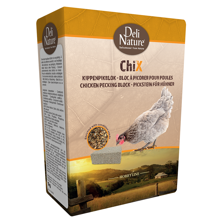 - Mode d’emploi : Placez le bloc à picorer dans un endroit sec dans le poulailler ou l’enclos. Un bloc suffit pour 3 à 5 poules.